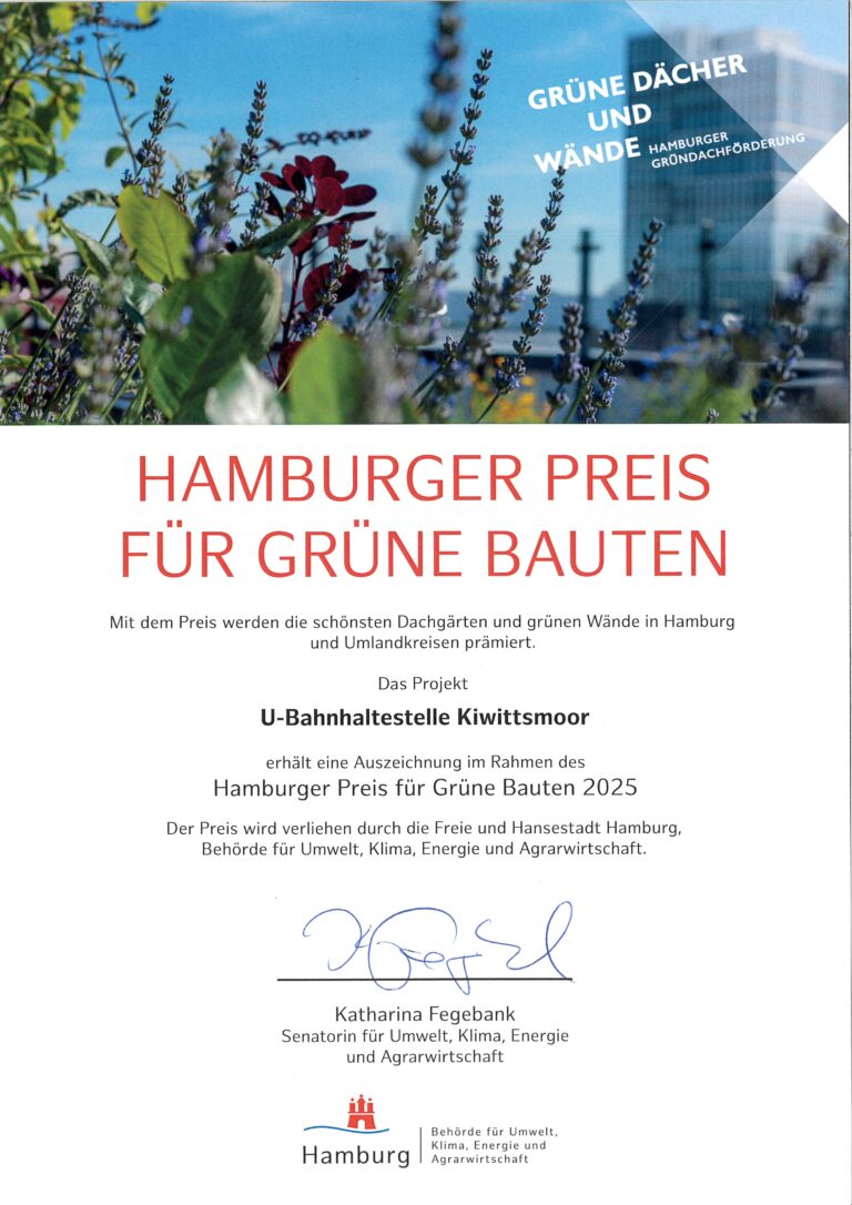 Hamburger Preis für Grüne Bauten 2025: Auszeichnung für die U-Bahnhaltestelle Kiwittsmoor