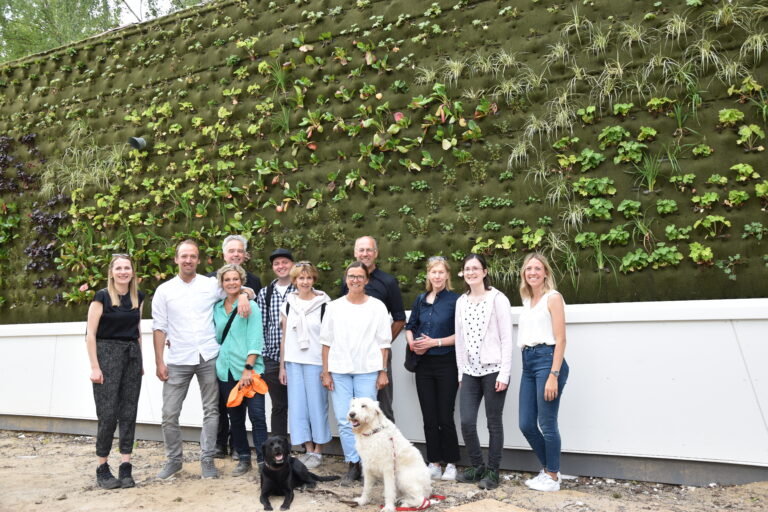 Der neue Seiteneingang der U-Bahnhaltestelle Hudtwalckerstraße eingerahmt von Grün